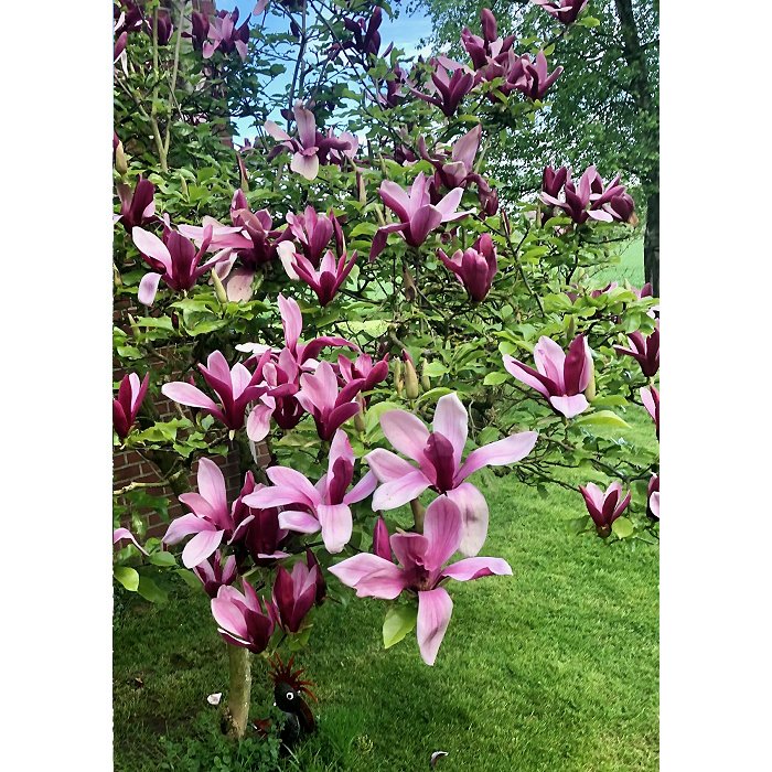 Η μανόλια με τα σκούρα μοβ άνθη δεν απειλείται από τους ανοιξιάτικους παγετούς, επειδή, σε αντίθεση με άλλες μανόλιες, ανθίζει στα τέλη Απριλίου και Μαΐου, ακόμα και αφού έχει ήδη αρχίσει να σχηματίζει φύλλα. Τα φύλλα έχουν σχήμα αυγού. Η επανάνθιση είναι συχνά δυνατή. Η μοβ μανόλια φτάνει σε ύψος 3-5 μ. και συνήθως αναπτύσσεται σε παρόμοιο πλάτος. Αυτός ο μεγάλος θάμνος είναι φυλλοβόλος και ρίχνει τα φύλλα του τον χειμώνα. Αυτή η μανόλια προέρχεται από την Κίνα.